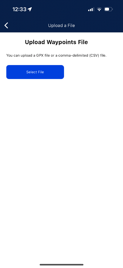- From the Dashboard, Click the Upload Waypoints icon (+)
