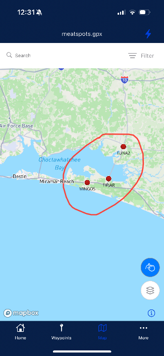 - NOTE: the selected waypoints will also be selected in the Waypoint List View if that view is now selected. This is especially useful for using the map to Bulk Edit or share waypoints.