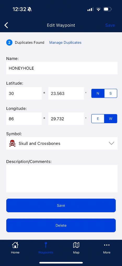 - To Edit a Waypoint, Single Click the waypoint to select it from the list.